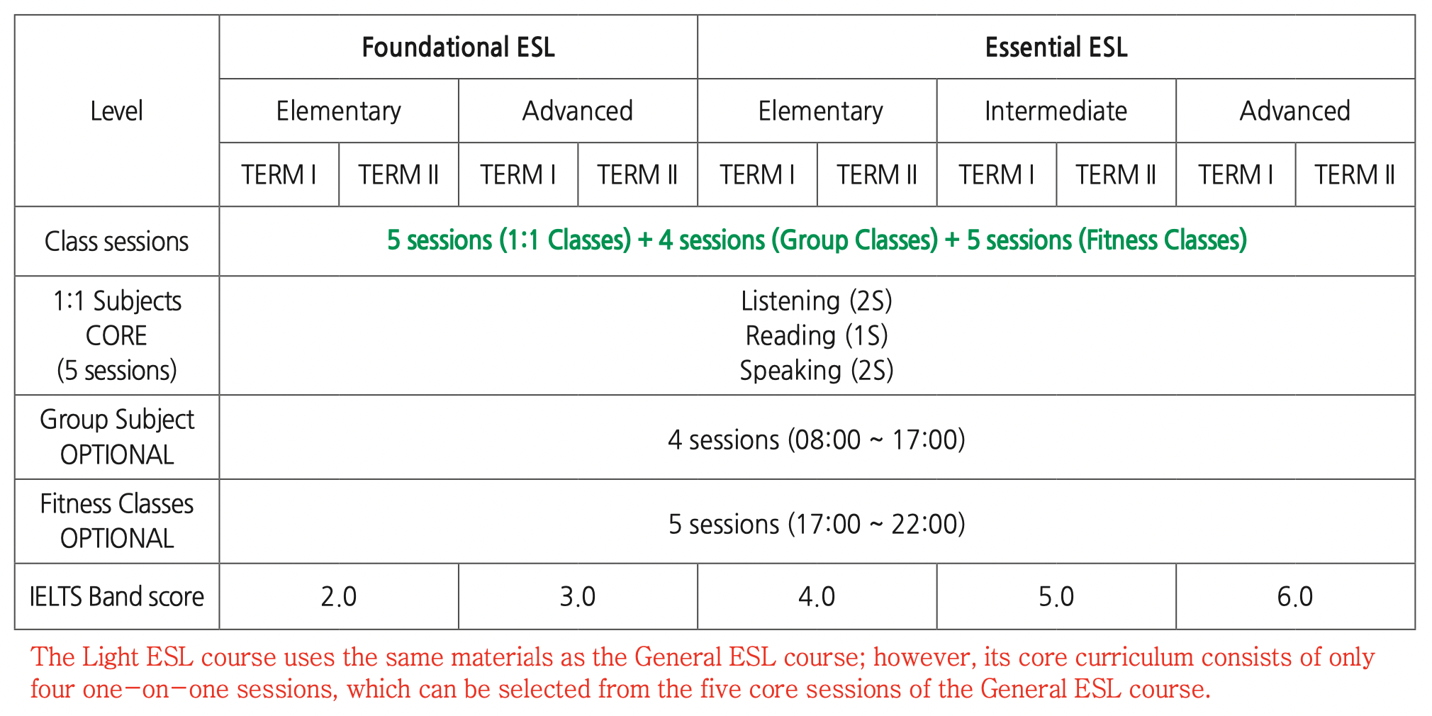1) General ESL หลักสูตรการเรียนภาษาอังกฤษเพื่อการใช้งานทั่วไป